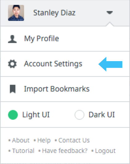 You can access Account Settings via the dropdown menu in the top-right of the page.